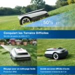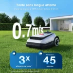 Recharge Ultra-rapide en 45 mins. Le robot peut couvrir 500 ㎡ de terrain en seulement 2 heures, y compris le temps de recharge.
